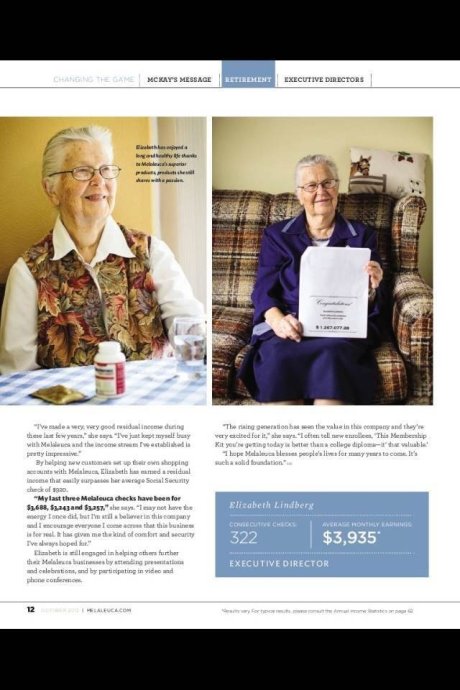 在美乐家,坚持就能成功,简而易行的美乐家让66岁的伊丽莎白从1985年开始,一星期工作5小时,7年后在她73岁的时候成为执行总监,月收入一万美元以上。