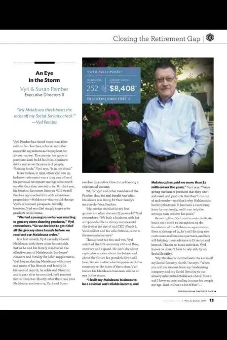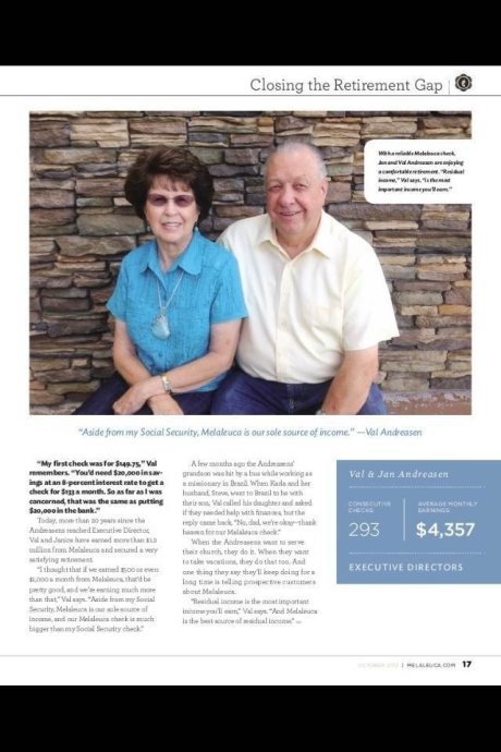 25年后,她每月从社保机构收到828美元(人民币5700余元)的收入,她的美乐家兼职事业每月付给她3366美元(人民币2万3千余元)。至今为止,她已经从美乐家收获了$1,163,253.51美元(人民币约802万)。“当我加入美乐家的时候”她回忆到---就介绍了20多个邻居和朋友成为美乐家的会员……
